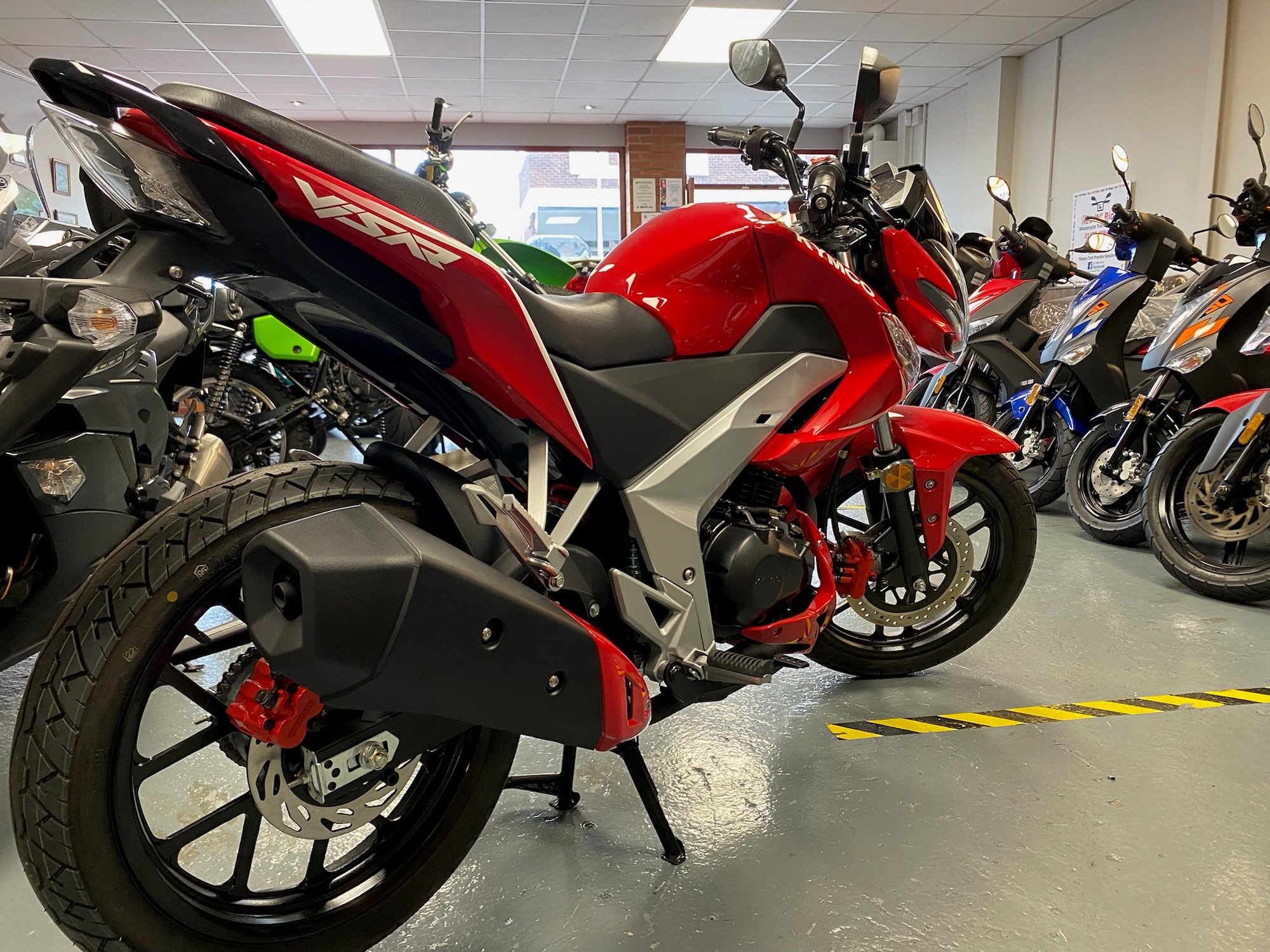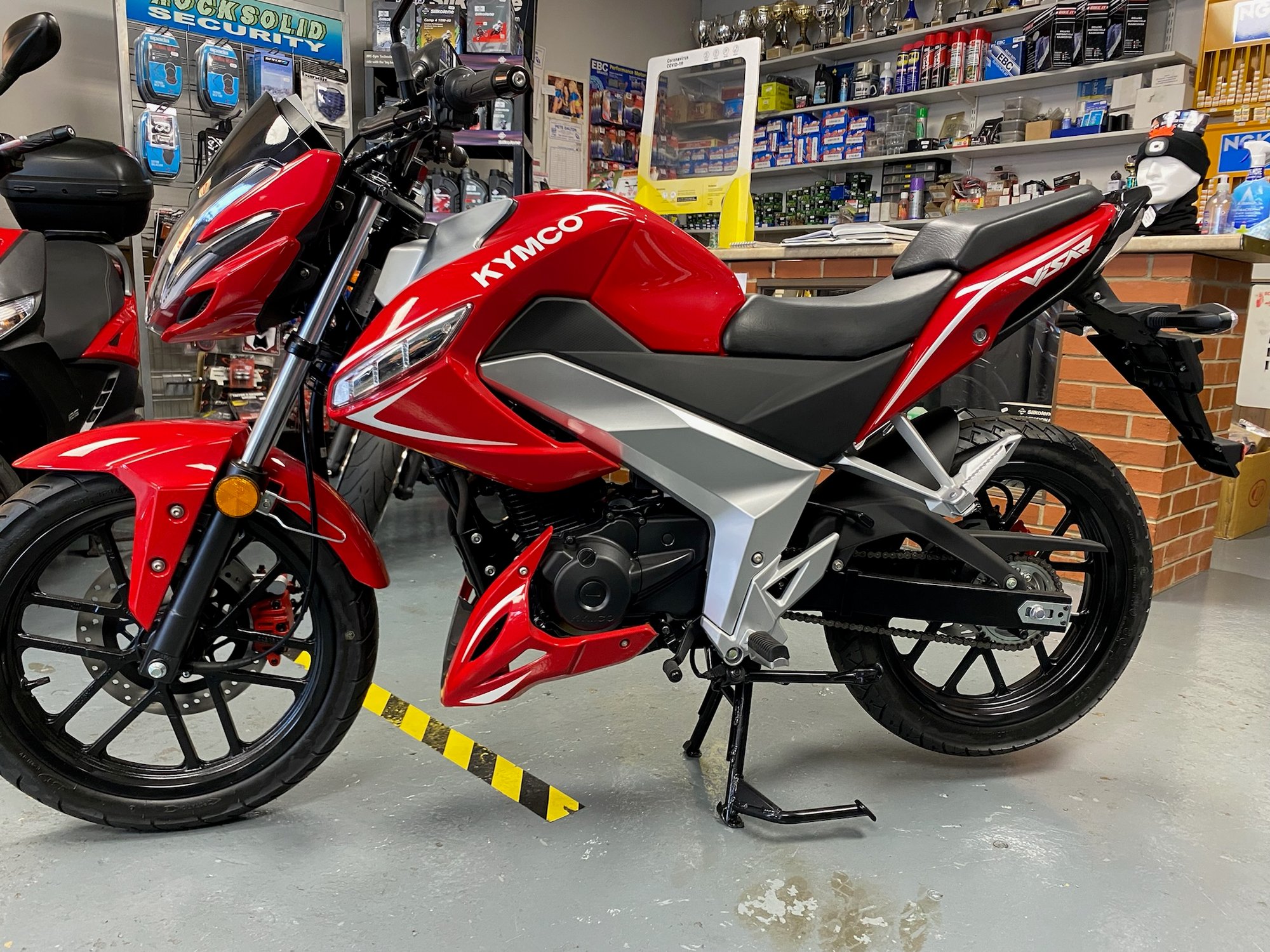 The VSR 125cc is a learner friendly sporty naked bike, Ideal and safe for the learner or entry level motorcycle rier. VSR comes restyled with 2 new body colours and exciting sporty decals to extenuate its sporty design lines. VSR is the perfect motorcycle for tackling traffic safely and discovering the great outdoors in style. VSR 125 comes with a safe and efficient 'Combined Braking System' (CBS) with front and rear disc brakes, providing riders a very reassuring and confidence giving ride. The front headlights are styled for considerable impact, which include stunning LED tube lighting. A clear and easy to read instrument dash has all the relevant data expected on a modern motorcycle, gear position indication, partial odometer,speedometer, tachometer and fuel guage, For convenience and easy maintenance, a side and centre stand have been included.