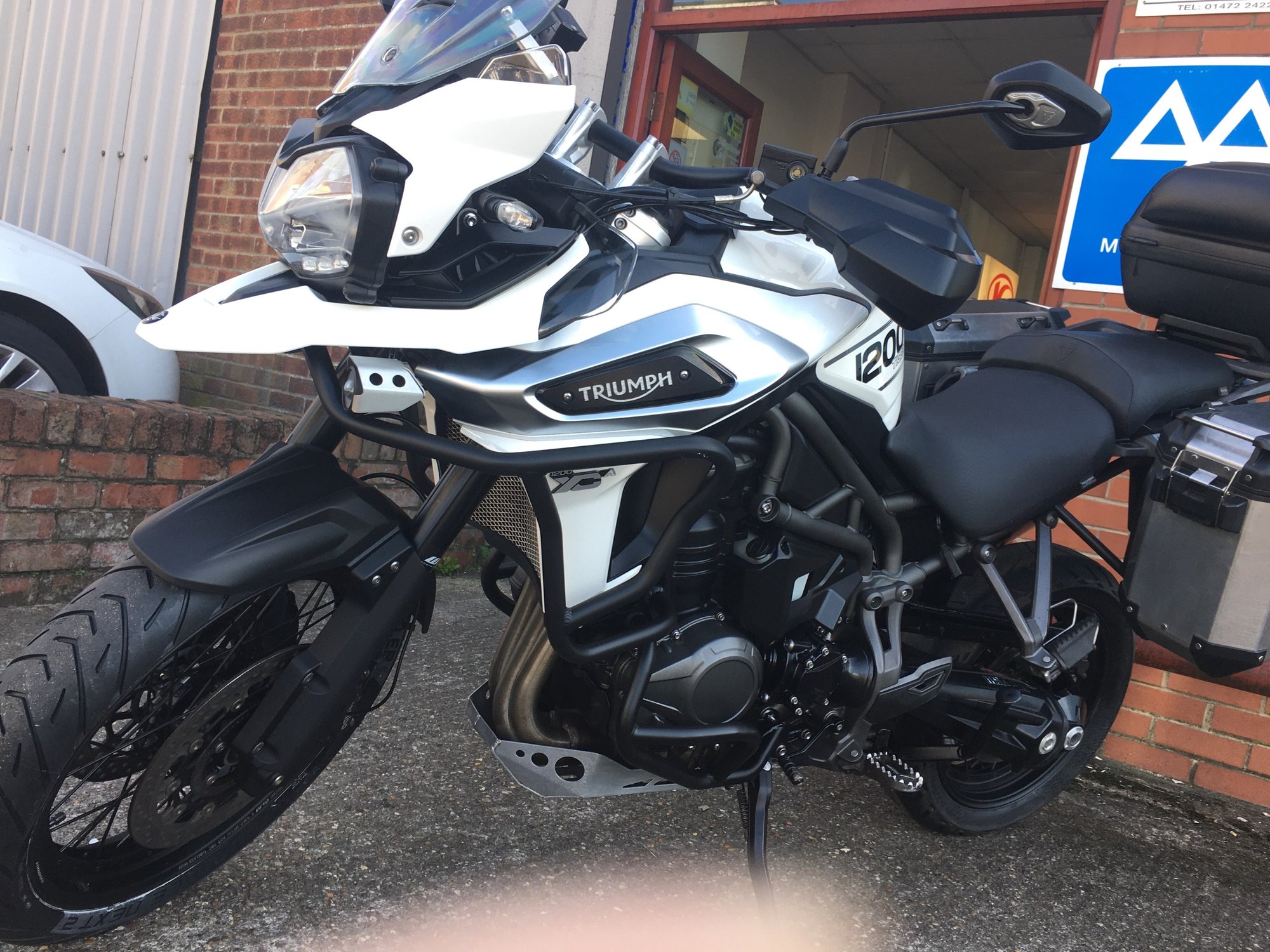 This exceptional example of this popular adventure bike has the added bonus of Triumph hard side cases, Givi top case, engine and body protection bars, gorgeous sounding Arrow silencer, all the usual Triumph refineries, full service history and all keys and books. This excellent machine will leave us fully serviced with a fresh 12 months Mot. Part exchange welcome. Nationwide delivery available.